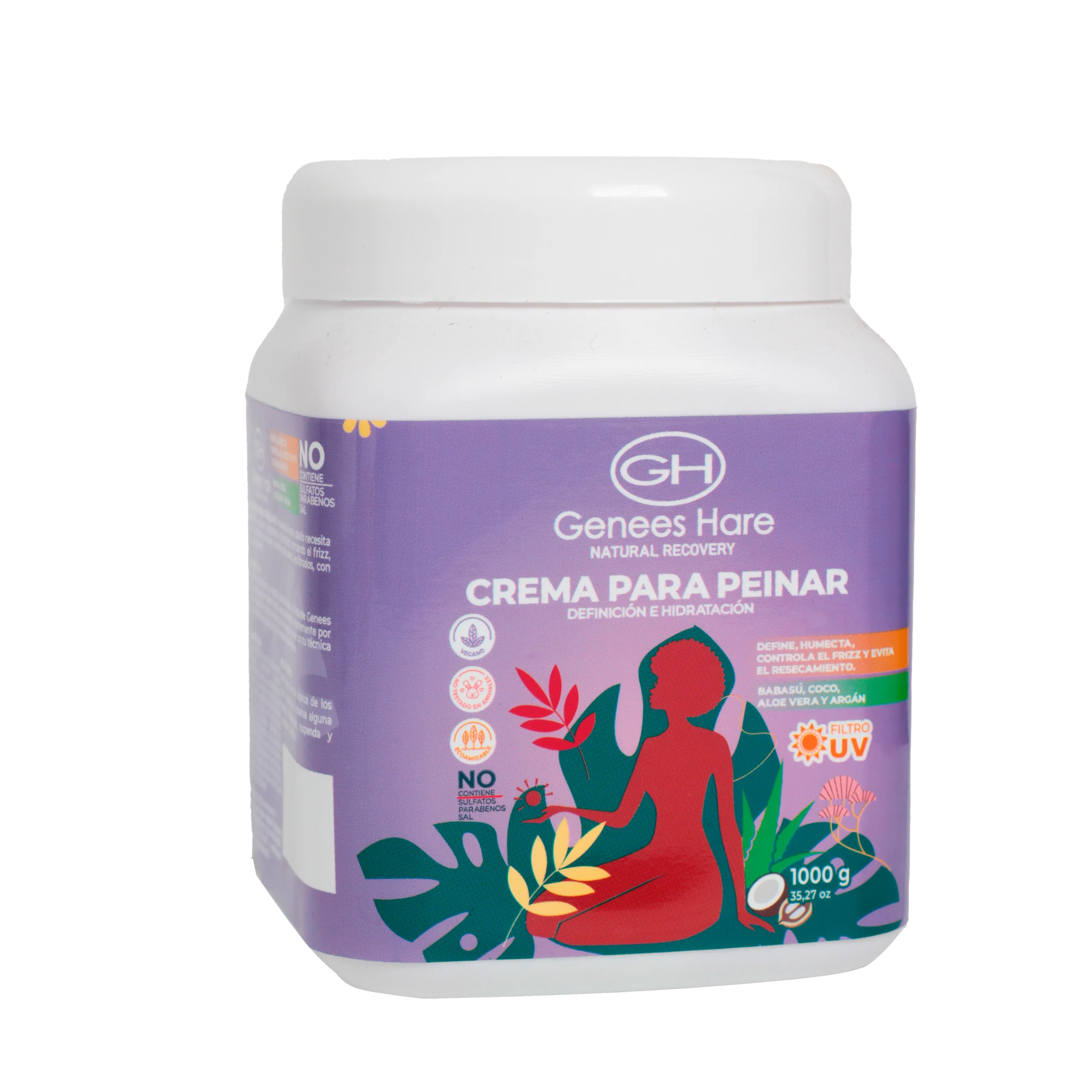 LA CREMA DE PEINAR GENEES HARE Contiene todo lo que tu cabello necesita para dar un acabado de rizos definidos y humectados, controlando el frizz, ligeros, controlando el volumen, dejándolos ultra sedosos, equilibrados, con brillo y movimiento.